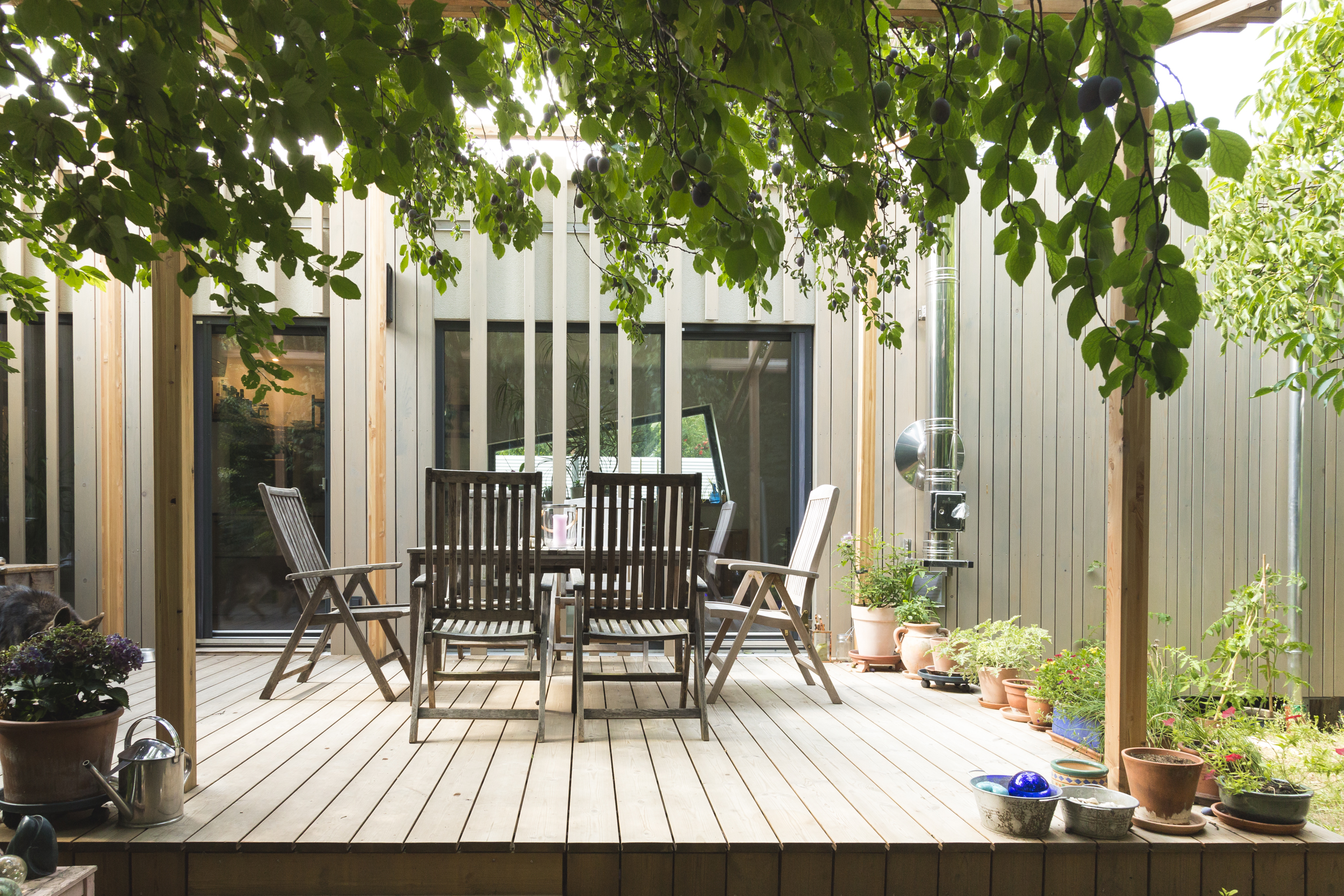 COMMOD HOUSE „Zauberhaus“ oder auch Magic House, wie es liebevoll von seiner Bewohnerin genannt wird, besteht aus 2 Modulen und spannt sich im L-Baukörper auf einer Fläche von rd. 76m² BGF und 62m² NF auf. Der Zauber des Hauses besteht in dem Einklang mit der Natur, in dem es sich befindet. Durch die aufgelockerte Fassade, die im Inneren ein lockeres Licht- und Schattenspiel an die Wände zaubert, fügt es sich in den Blätterwald der Umgebung ein. Der Terrassenbereich gehört zum Wohnraum und fließt mit dem offenen Grundriss ineinander.