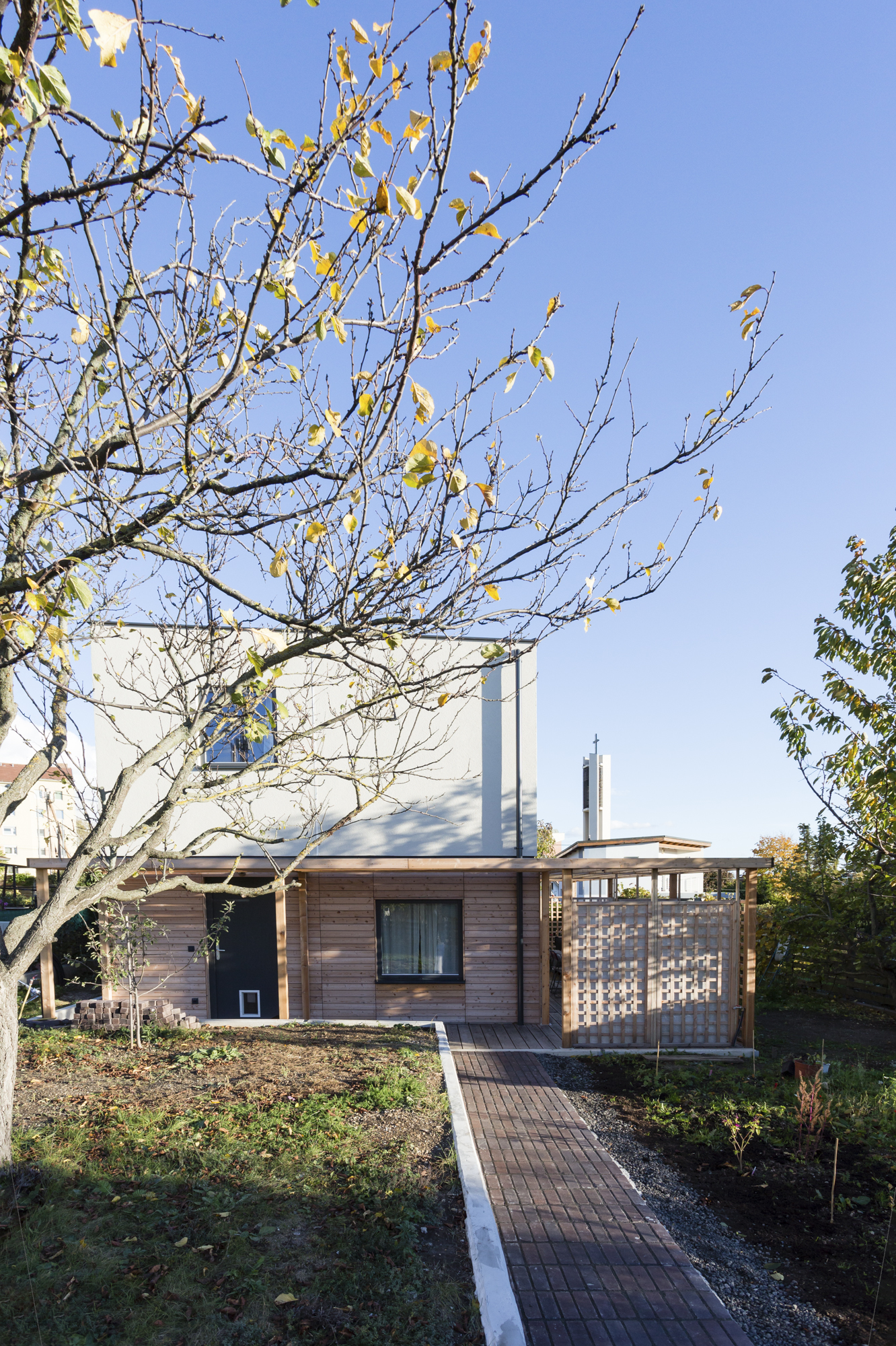 COMMOD KleingartenhausDas COMMOD Kleingartenhaus greift die Typologie des Wiener Kleingartenhauses auf und entwickelt sie als kompaktes, modulares Wohnhaus in Holzbauweise weiter. Im Mittelpunkt steht dabei die enge Verbindung von Wohnen, Garten und Leben im Freien, die diese besondere Form des Wohnens seit jeher auszeichnet. Mit einer Bruttogrundfläche von 78 m² besteht das Haus aus vier Modulen und ist auf zwei Geschosse verteilt. Das Satteldach folgt den Vorgaben für Wiener Kleingartenhäuser und fügt sich selbstverständlich in das architektonische Gesamtkonzept ein. Zusammen mit dem holzverkleideten Erdgeschoss und dem klar ausgebildeten Obergeschoss entsteht ein Haus mit ruhiger, präziser Erscheinung. Trotz der kompakten Größe wirkt es innen überraschend großzügig.